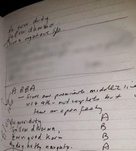 Towards the end of my last post I looked at where I was (or is it am?) on the Do your duty front. Do I actually do my duty? And if I do, then how well am I doing it?