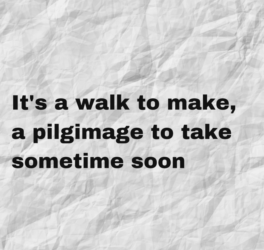 I have no idea where or what the walk to take, the pilgrimage to make, was – or is. Which suggests a rather obvious conclusion: ‘sometime soon’ never came. The walk was not taken; the pilgrimage was not made.