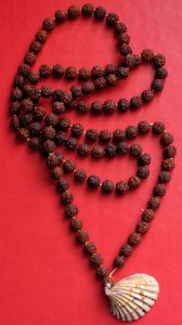First I wore it around my neck attached to a mala (prayer beads) made of Rudraksha seeds I used for chanting mantra.